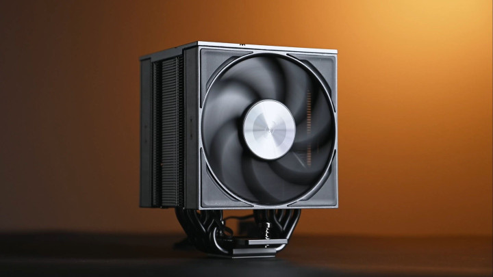 该塔式风冷采用推挽式风扇组合,两颗12025规格双滚珠轴承风扇一正叶、一反叶,150RPM的转速差可避免产生共振。