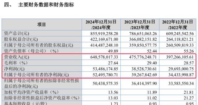 这次IPO,鸿仕达计划募资2.17亿,钱怎么花?1亿用来还贷款和补充流动资金,剩下的投到智能制造扩产和研发中心建设上。为啥要扩产?因为订单多,生意好!2022年,他们收入3.97亿,2023年涨到4.76亿,2024年直接冲到6.49亿。净利润也水涨船高,从2969万到5348万,三年翻了快一倍。这成绩,搁谁身上都得骄傲一把!