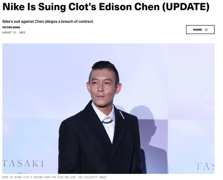 别看 90 万人民币对陈冠希不算啥(他一双联名鞋就能赚回来),但耐克这波起诉,恐怕没那么简单。