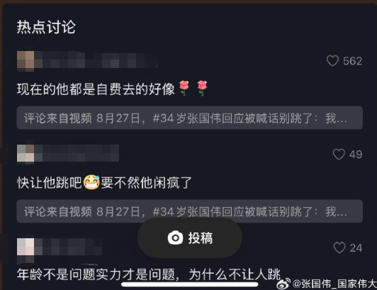 2020年初,张国伟宣布退役,他写道:“对不起,我真的跳不动了,我决定退役了。”